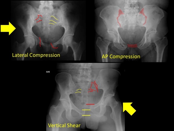 (2) 왼쪽 골반의 장골 날개 골절 – 부러진 뼈의 올바른 정렬