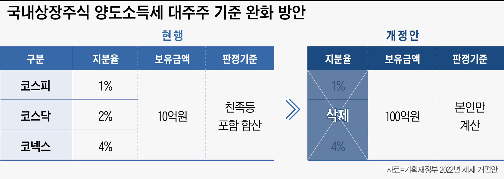 기획재정부가 대주주 상장주식 양도소득 과세 결정 시 가족 등 기타 주주에 대한 과세 합리화(22.12.26)