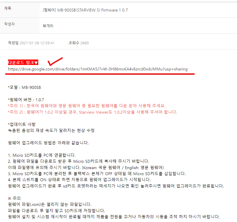 스타뷰 뷰제라 MB-900SB 블랙박스 업데이트