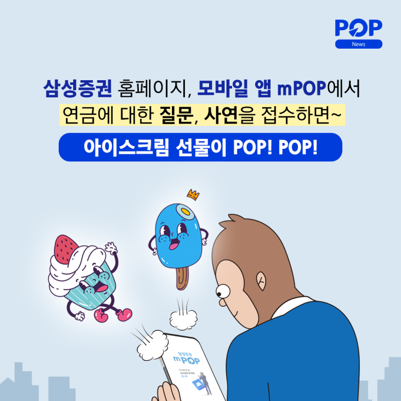POP NEWS 처음부터 3줄로 요약 삼성증권 ‘연금상담센터’ 만들기 퇴직연금 문제 해결을 위한 유튜브 콘텐츠 ‘연금상담센터’ 당 평균 조회수 10만, 연금 수령에 대한 고객들의 관심 확인 골드 고객 관련 질문 무료 아이스크림 상품권 7월 31일 이전에 추첨