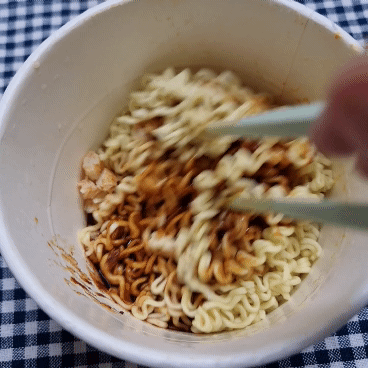 볶음면을 먹을 때 습관입니다.