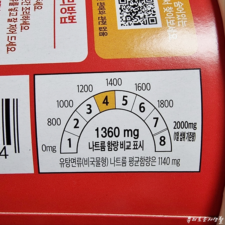 라면은 1360mg이 적당하다고 생각합니다.