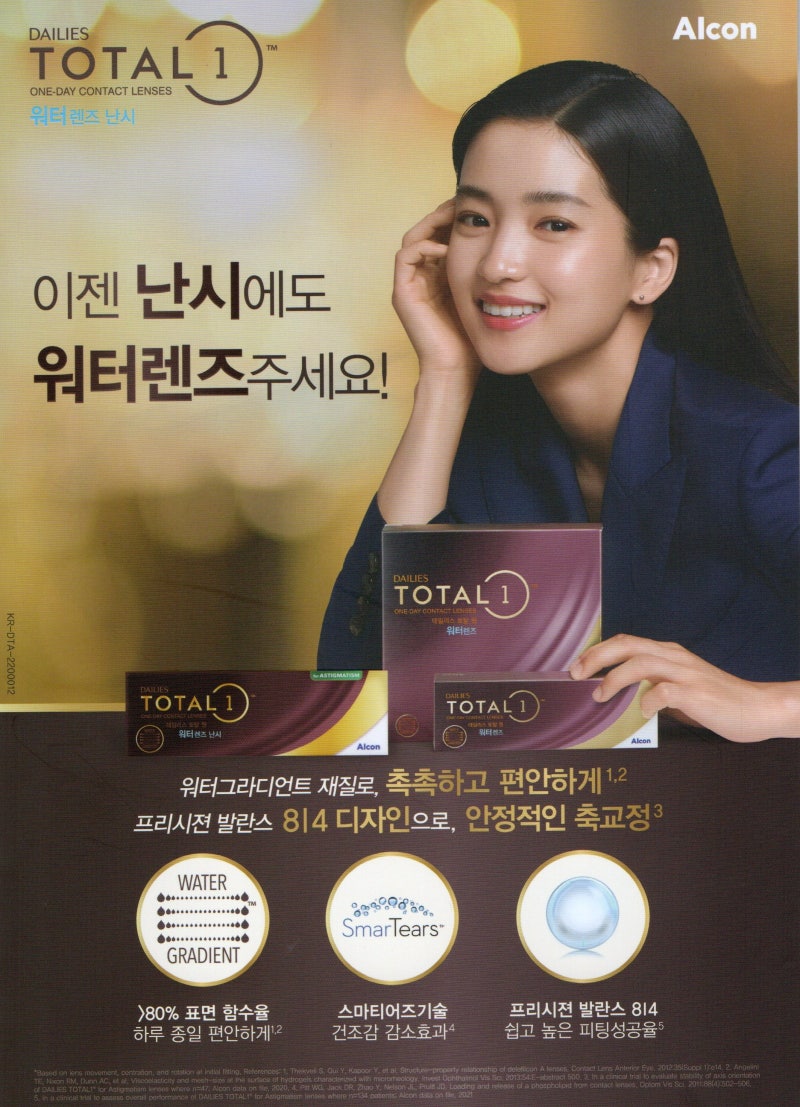 *매일 착용 소프트 콘택트 렌즈 난시가 없는 눈의 굴절 이상(근시 및 원시) 시력 교정을 위한 일회용 소프트 콘택트 렌즈. 본 제품은 “의료기기”이므로 “사용상의 주의사항” 및 “사용방법”을 잘 읽고 사용하시기 바랍니다. 광고 댓글: Combination-2022-50-033 KR-DTA-2300002 이 기사는 Alcon의 비용으로 작성되었습니다.