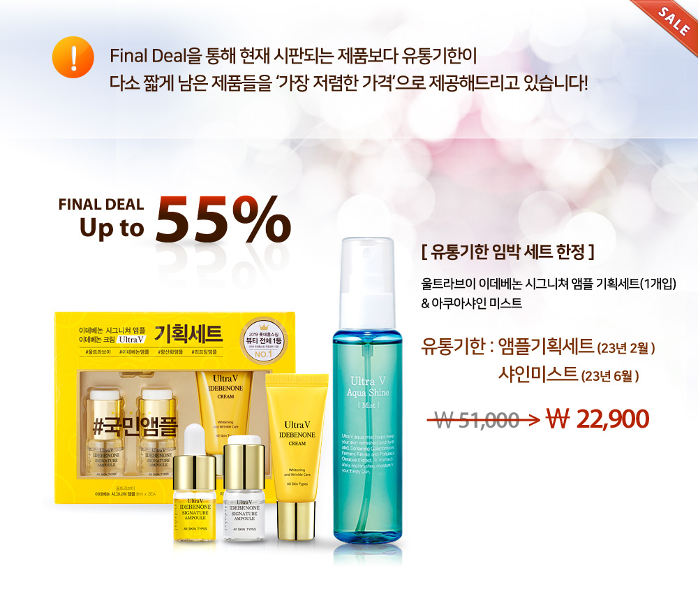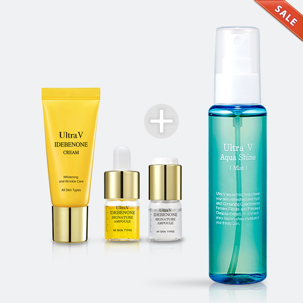 울트라V 이데베논 아쿠아 샤인 미스트는 이데베논, 병풀 추출물 함유로 피부 수분&진정시켜 줍니다.