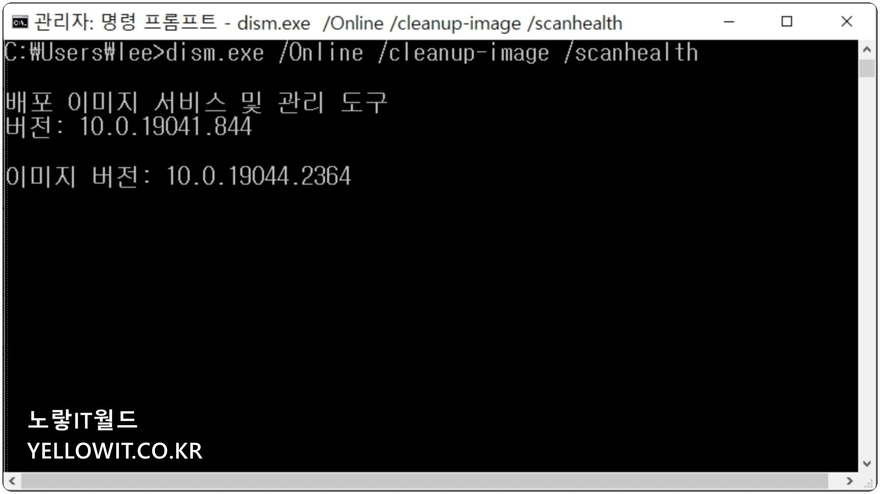 컴퓨터가 다시 시작된 후 관리자 권한으로 명령 프롬프트를 다시 실행하고 다음 명령을 입력하여 DISM 복구를 계속합니다.