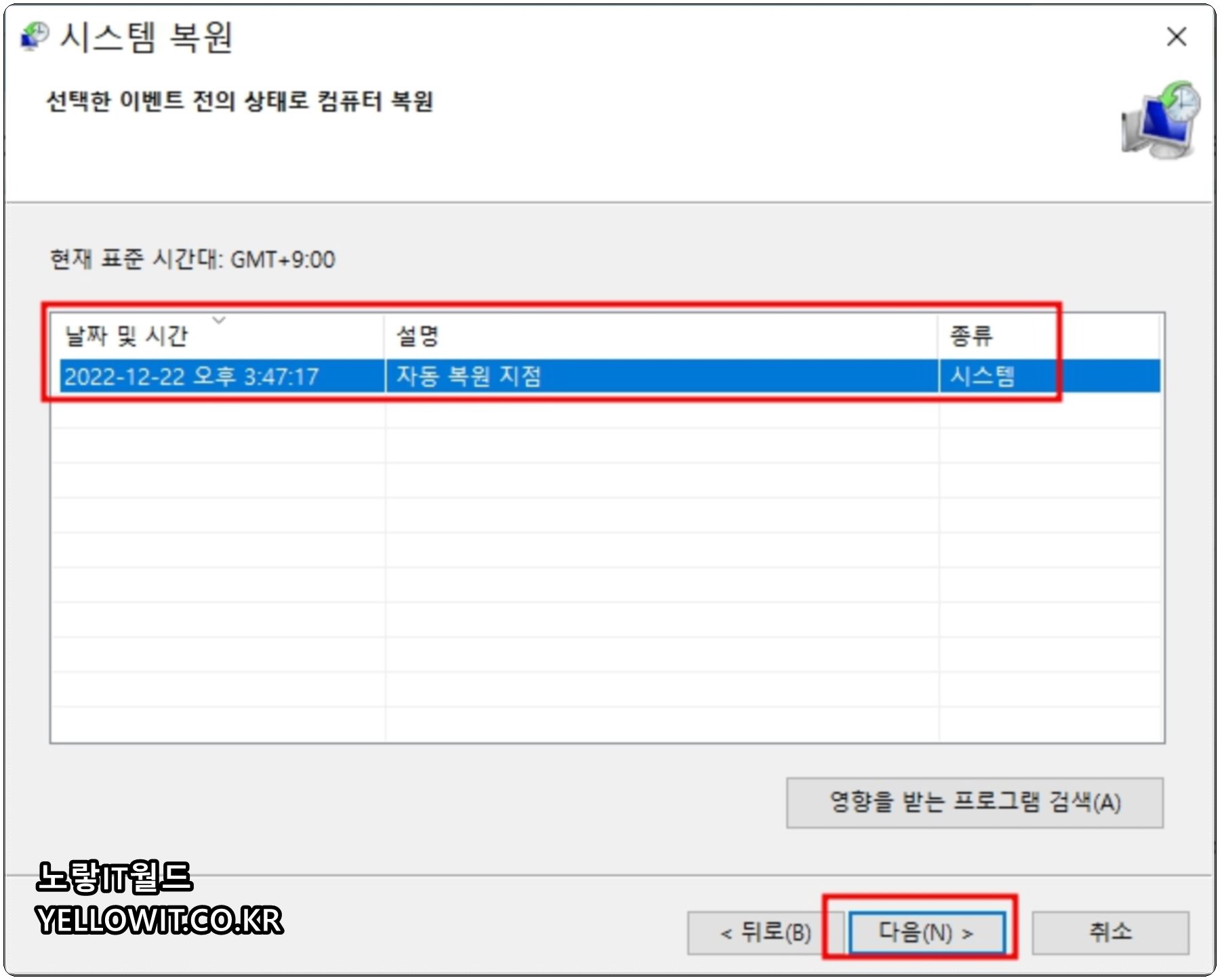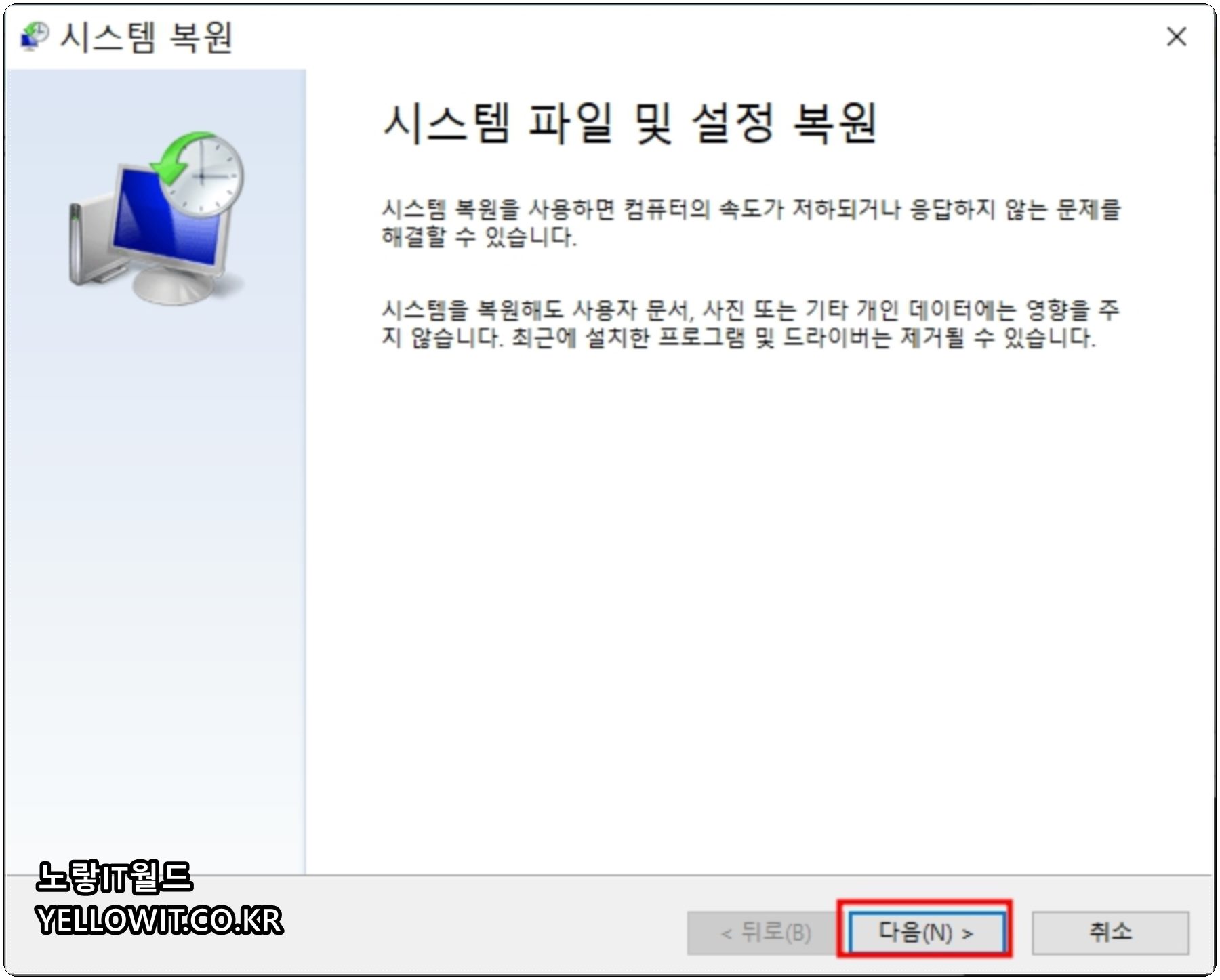 시스템 복원 시작