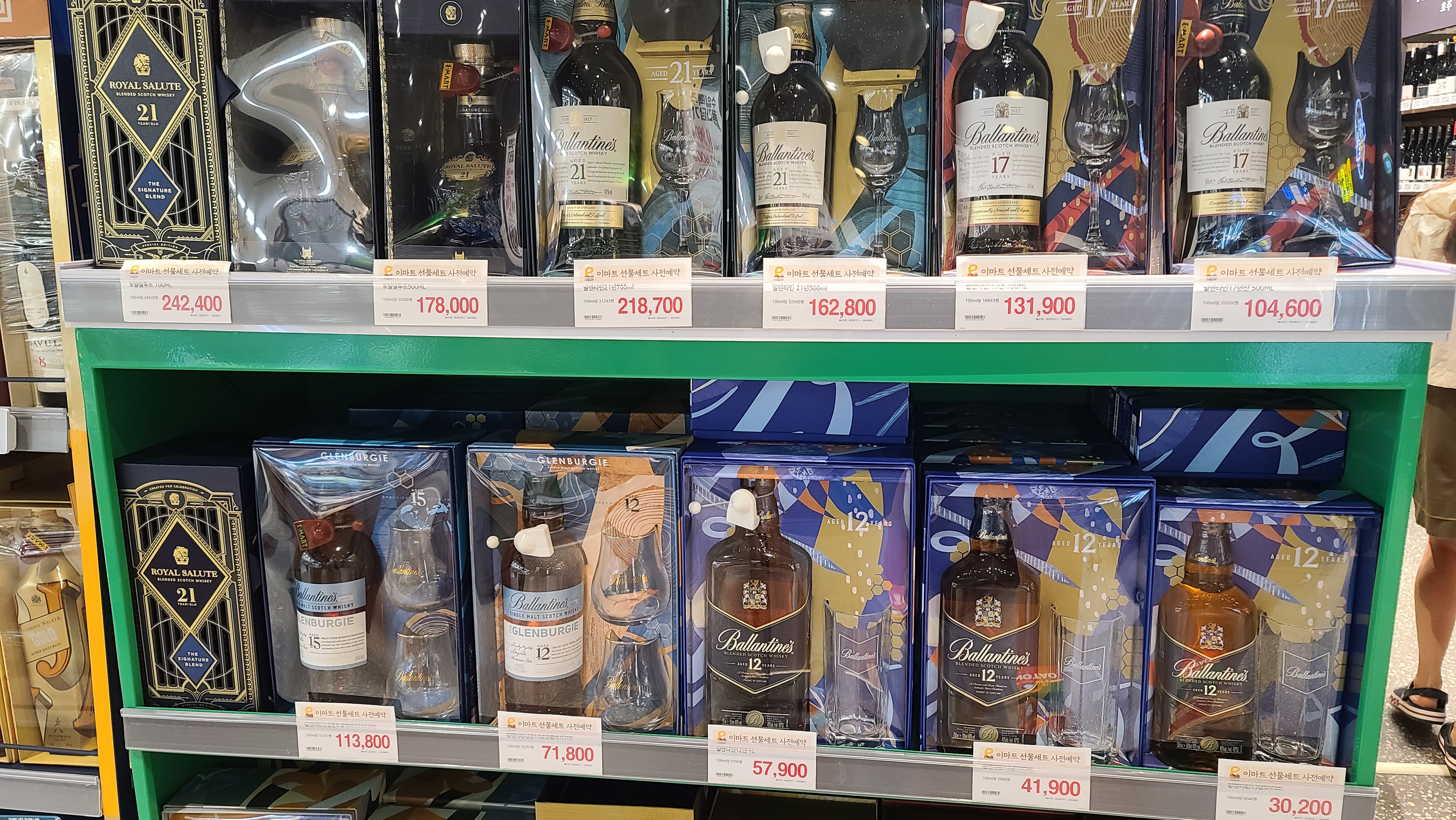 회사 바로 앞에 이마트가 있어서 점심과 술을 먹으러 갔는데 위스키 중추절 선물박스가 진열되어 있는 걸 봤어요. 2022년 8월 마지막주입니다^^