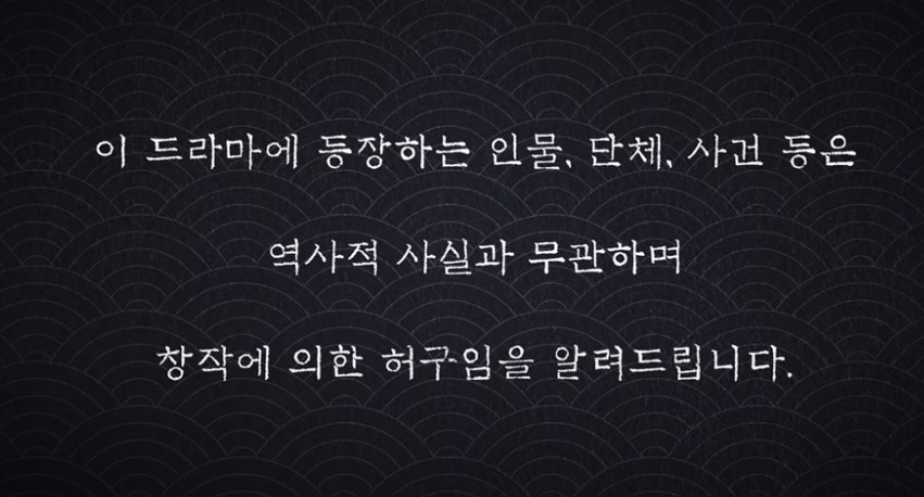 문제는 앞서 언급했듯이 실제 왕과 왕비의 이름을 사용했다는 것입니다. 실제 역사 이야기를 각색하여 재미를 더한 드라마일 뿐입니다. 드라마 시작 전후로 아래와 같은 알림 메시지가 계속 뜨는데 잘 읽지 않는 것 같다.