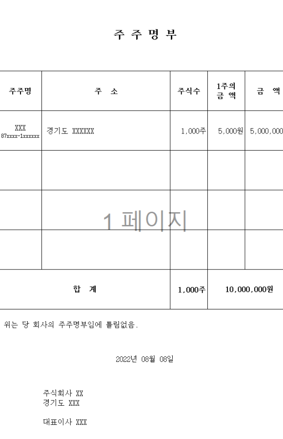 주주명부 양식 2023년 03월 13일 by issue 부동산 회사를 운영하고 있습니다. 대출, 자동차 리스 등을 할 때 은행이나 정부 기관에 주식 등록을 해야 할 수도 있습니다. 그때 우리는 유용하게 사용할 수 있는 회사 주주 등록 양식을 발행할 것입니다. '추천 관련글, [자동차] 서울시, 조기폐차(컴활) 스프레드시트 실무:차량 보험료 할증 할인, 다이렉트 자동차 보험차 2대 부부 한정 보험이 좋은지 아닌지를 통해…고정 사다리 안전 체크리스트 주주등록양식_by집덕.xlsx 0.01MB