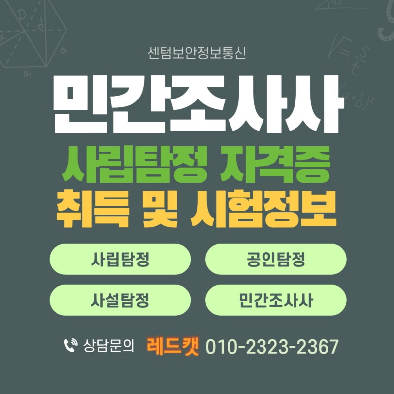 게다가 민간 조사 이외에도 일반 기업이나 공적인 영역에서도 활동할 수 있어 탐정의 전망은 매우 밝은 편입니다. 그렇기 때문에 전직 경찰공무원 출신이 퇴직 후 무엇을 해야 할지 고민하게 되는 시점에 탐정자격증을 취득하고 향후 미래를 위한 준비를 하기도 할 정도로 주목하는 직업 중 하나입니다. 만약 취업준비생이나 관련 업무를 통해 활동을 희망하시는 분은 해당 자격증을 취득해야 합니다. 아직 자세한 정보가 많지는 않습니다. 그래서 본격적으로 시험 정보 및 취득 방법에 대해 알려드리겠습니다.