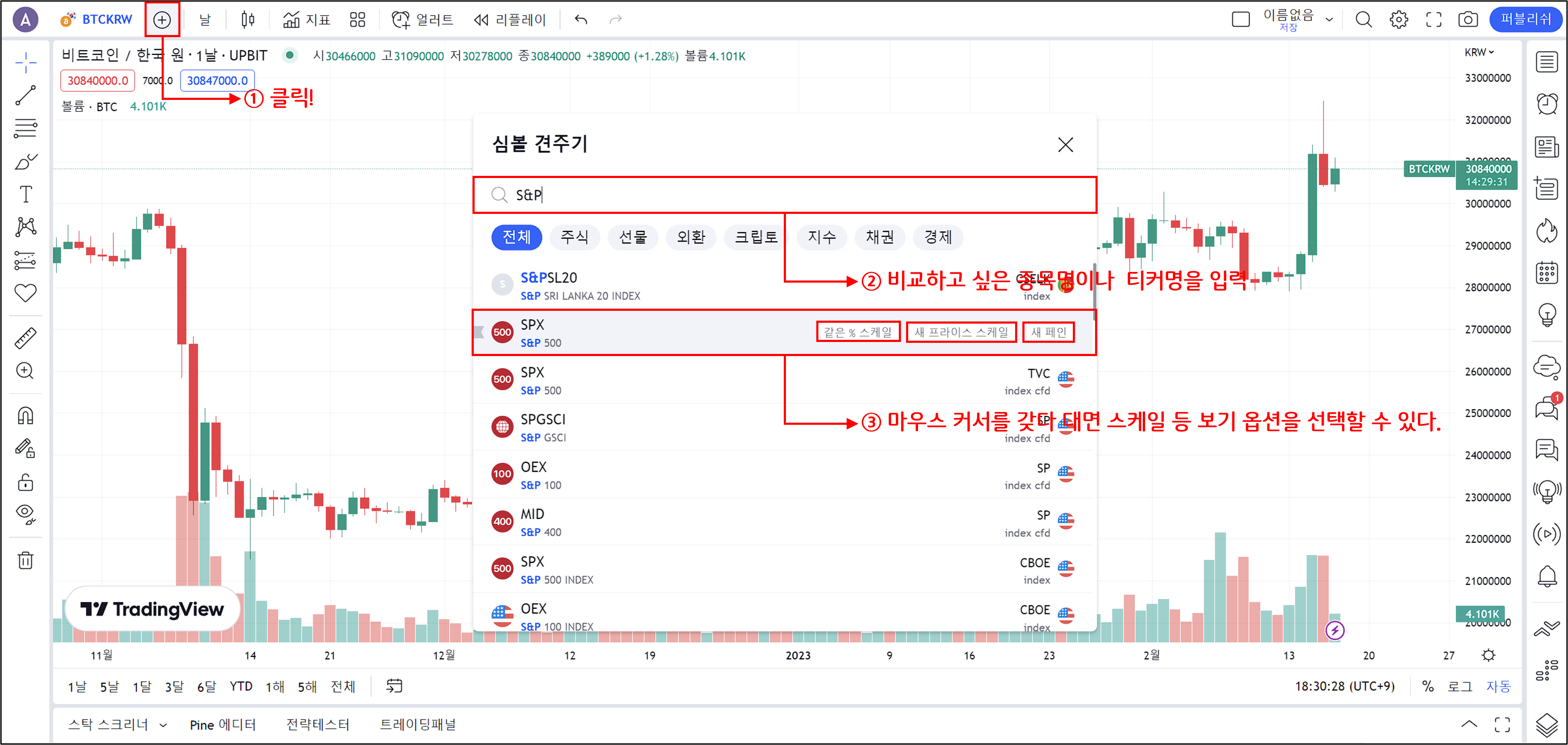 ① 상단의 『+』를 클릭하면 심볼 비교 창이 나타납니다.