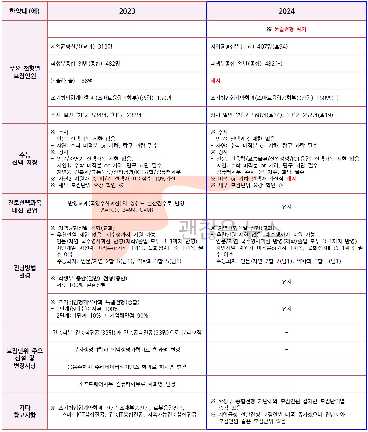 What’s Change 2023 VS 2024 #28 – 한양대학교 에리카 < 강석의 데이터박스 < 보통입시 < 본문 - 보통뉴스(nextplay.kr)