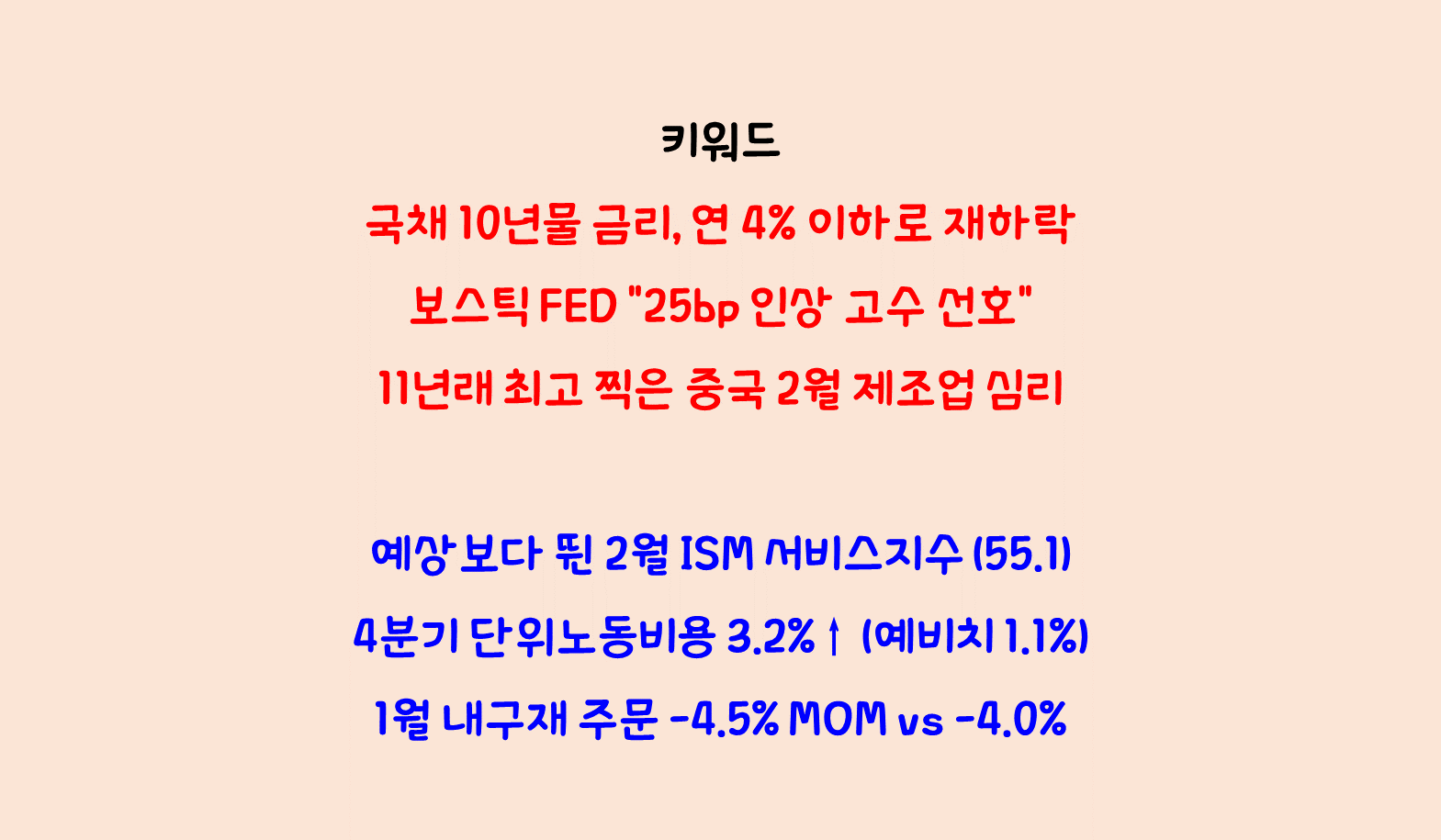 3/08(수) Fed Beige Book, Powell House Hearing, 미국 1월 RETURN