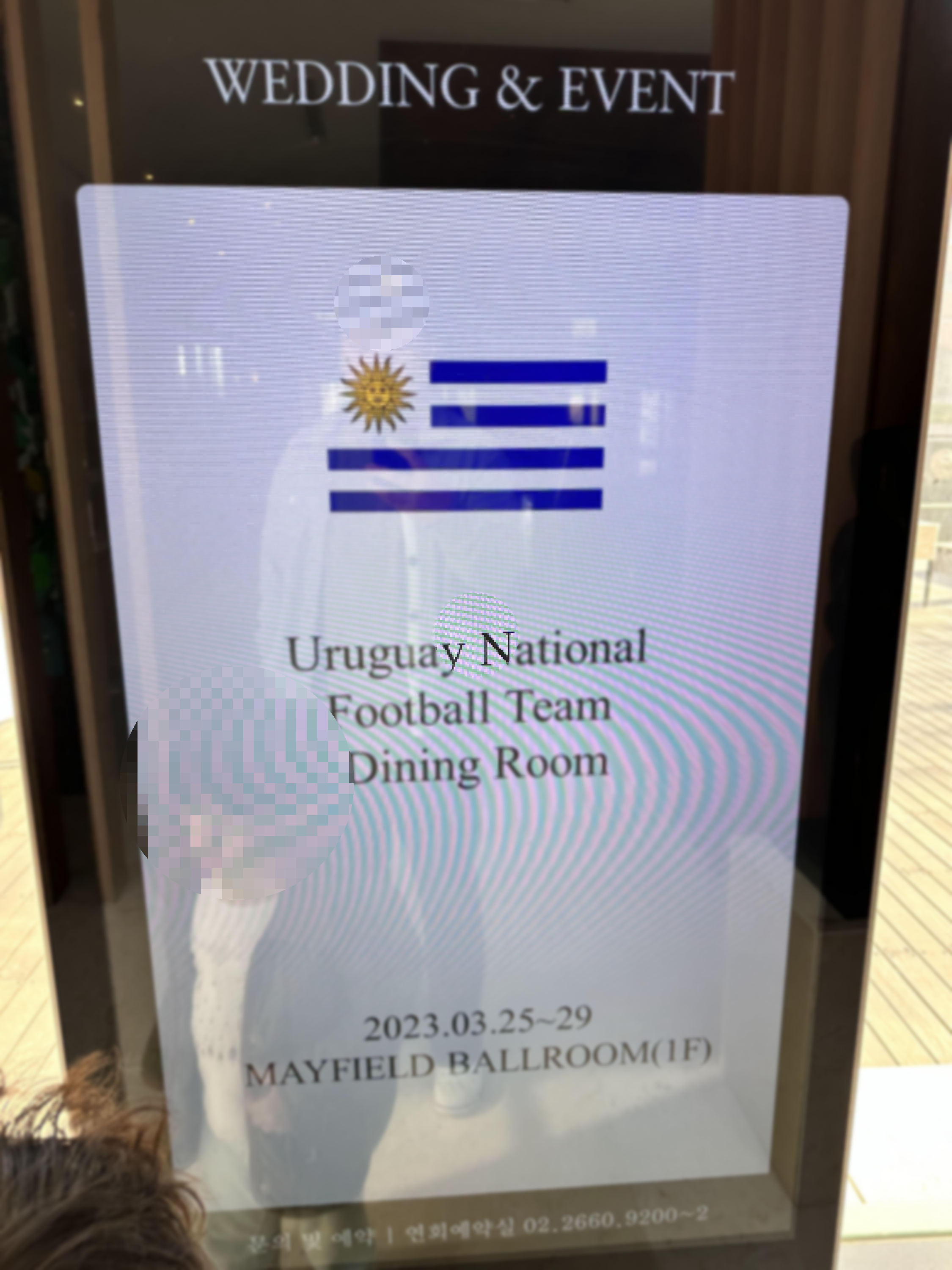 ☞ 이날 새로 선포된 대한민국 클린스만과의 평가전을 위해 우연히 한국을 찾은 우루과이 대표팀이 이 호텔에 머물렀다. 너무 신기해서 발베르데랑 누네즈가 있는지 확인했는데 결국 아무도 몰라서 사진을 안찍었네요. 생소한 경험이었지만 열광적인 팬클럽들이 호텔까지 찾아와 사인을 받고 즐거운 시간을 보내는 모습을 볼 수 있었습니다.